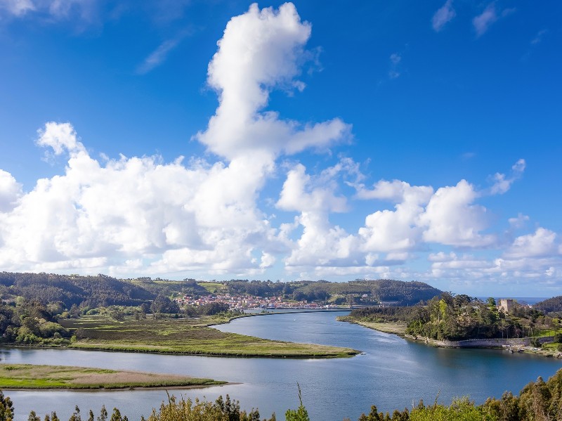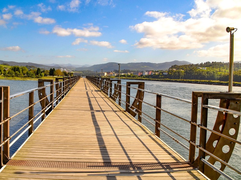 Heute erreichst du Galicien! Der Camino del Norte verabschiedet sich von Asturien mit einer sanften Etappe über Felder, durch Pinienhaine und entlang des Atlantiks. In Ribadeo überquerst du die mächtige Brücke über die Ría de Ribadeo, ein spektakulärer Moment! Die schönen Jugendstilvillen und lebhaften Plätze Ribadeos bilden den würdigen Rahmen für deinen Abschied vom asturischen Küsten-Jakobsweg.