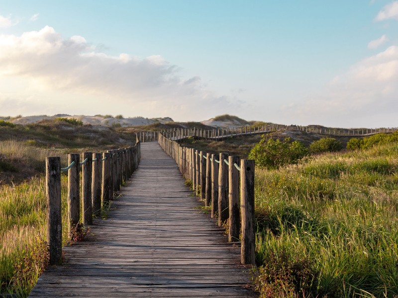 Einen Jakobsweg, bei dem man auf Holzbohlenwegen durch Dünen und entlang naturbelassener Strände pilgert; den gibt es nicht? Doch! Zwischen den UNESCO-Weltkulturerbe-Städten Porto und Santiago de Compostela führt der portugiesische Küsten-Camino zu drei Viertel der Strecke direkt an oder in unmittelbarer Nähe zur Atlantikküste entlang. Und damit du die Prachtpanoramen so richtig genießen kannst, bucht PURES REISEN dir komfortable Hotels und organisiert den zuverlässigen Transport deines Gepäcks während der Wanderungen. Bei PURES REISEN wird Pilgern zum genussvollen Wanderurlaub!