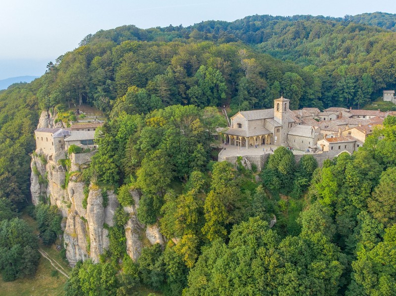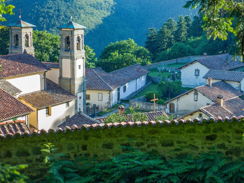 Mit mystischer Ruhe führt der Weg tief hinein in den Casentino-Urwald. Hohe Tannen und stille Schluchten schaffen eine fast spirituelle Atmosphäre. Mit jedem Schritt nähert sich die berühmte Einsiedelei Camaldoli, ein Ort klösterlicher Stille und kunstvoller Tradition. Sie beherbergt u. a. eine Zelle, in der der heilige Franziskus einige Monate verbracht haben soll.