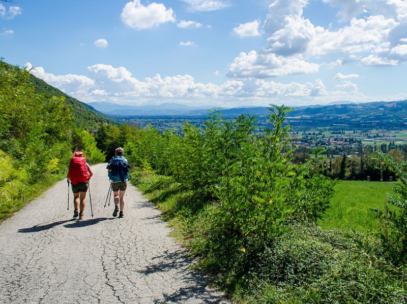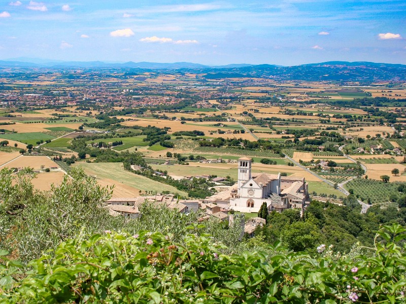 Übrigens: Es gibt für diese Etappe auch eine Variante durch die Berge. Dann wanderst du zunächst zur franziskanischen Einsiedelei "Eremo de Cacerci" und weiter bis kurz unter dem Gipfel des Monte Subiaso. Dabei hast du fantastische Fernblicke in das Tal und auf Assisi, allerdings auch gut 700 Höhenmeter im Aufstieg mehr!