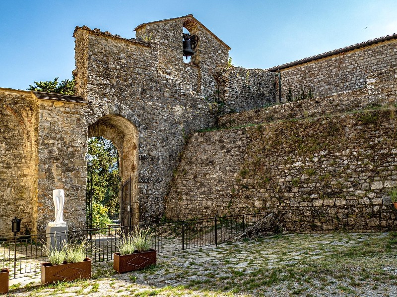 Mit einem aussichtsreichen Höhenweg beginnt der Tag, oft begleitet von Adlerkreisen über den Felsen. Die Berge öffnen sich zur spirituellen Seite der Toskana.