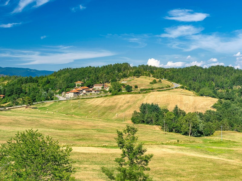 Mit dem Duft dunkler Bergwälder begleitet dich die Natur auf schmalen Pfaden. Steineichen, Tannen und weite Fernblicke machen die Etappe besonders abwechslungsreich. Mit sanftem Abstieg erreichst du Badia Prataglia, ein Bergdorf, das zwischen Nationalpark, Tradition und slow-life-Atmosphäre schwebt.