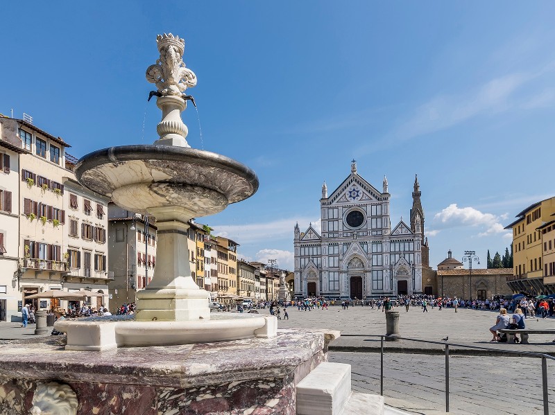 Was für ein Auftakt! Florenz, die architektonische Perle der Renaissance, markiert den würdigen Startpunkt deiner Franziskuswegreise. Mit Santa Croce thront die größte Franziskanerkirche Italiens im Zentrum der Altstadt. In ihrem Innern werden die Reliquien des heiligen Franz von Assisi aufbewahrt, und dank der Grabmäler Michelangelos und Galileo Galileis gilt sie gar als das "Pantheon von Florenz".