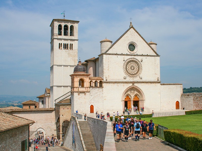Mit dem berühmten Anstieg zur Franziskusstadt beginnt dein Finaltag. Olivenhaine, alte Steinmauern und die typische Hügellandschaft Umbriens begleiten dich. Kurz nach dem Einmarsch durch das mittelalterliche Stadttor wirfst du de ersten Blick auf die Basilika von Assisi. Da kommt Gänsehaut auf: Ein magischer Ankunftsort voller Spiritualität und Geschichte. Und in den Tiefen der Basilika liegt das Grab des Heiligen Franziskus.