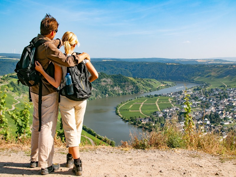 Der Mosel-Camino verläuft an mittelalterlichen Schlössern und Burgen vorbei durch die einmalig schöne Flusslandschaft. Dabei führt der Camino im Wechsel über liebliche Weinberge, durch dichte Wälder und einladende Dörfer. Du erlebst unvergessliche Ausblicke auf die berühmten Moselschleifen und zauberhafte Weindörfer mit historischem Charakter. Konzentriere dich ganz auf das Wandern, denn wir kümmern uns um die Buchung gepflegter Hotels und organisieren den zuverlässigen Gepäcktransport!