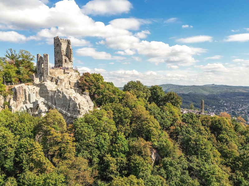Kaum gestartet, wartet schon das erste Highlight: Der legendäre Drachenfels ruft! Der Aufstieg lohnt sich doppelt, denn unterwegs grüßt das märchenhafte Schloss Drachenburg mit seinen Türmchen und Zinnen. Botanikfreunde sollten unbedingt einen Blick auf den ehrwürdigen alten Mammutbaum werfen – ein echter Gigant! Wer mag, nimmt die nostalgische Drachenfelsbahn, alle anderen erklimmen den Gipfel zu Fuß. Oben angekommen, belohnt dich ein spektakuläres Rheinpanorama. Weiter geht’s zum Uilandenkmal, bevor du die Ruine Löwenburg erreichst. Von hier schweift dein Blick weit übers Rheintal. Der Weg führt dich nun oberhalb von Bad Honnef durch herrliche Mischwälder, bis du schließlich im gemütlichen Rheinbreitbach ankommst. Eine Etappe voller Höhepunkte – im wahrsten Sinne des Wortes!