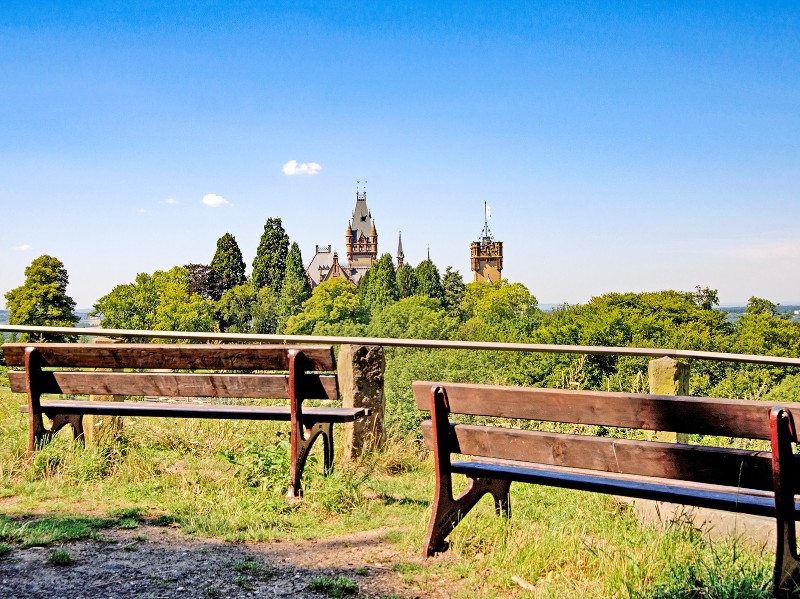 Weiter geht’s am Rhein entlang durch die pittoresken Städtchen Unkel und Linz – hier lohnt sich ein kurzer Bummel durch die historischen Gassen! Dazwischen passierst du die markante Erpeler Ley: Von diesem Felsvorsprung genießt du einen eindrucksvollen Blick auf die imposanten Brückenpfeiler der ehemaligen Ludendorff-Brücke bei Erpel – stumme Zeugen dramatischer Geschichte. Der Rheinsteig schlängelt sich durch duftende Wälder und über sonnige Höhenzüge, immer wieder eröffnen sich herrliche Ausblicke auf das majestätisch dahinfließende Flusstal. Das absolute Highlight wartet kurz vor deinem Etappenziel: Das prächtige, neogotische Schloss Ahrenfels thront über dem Rhein und kombiniert sich ganz hervorragend mit den nicht minder prächtigen Rheinpanoramen. In Bad Hönningen angekommen, hast du dir eine zünftige Pause redlich verdient!