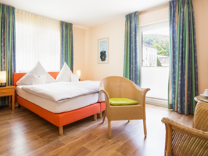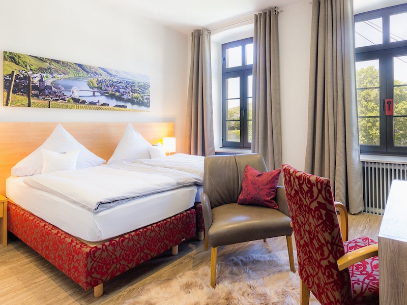 Alle Zimmer sind Nichtraucherbereiche und teilweise barrierefrei per Lift erreichbar. Für Wellnessfans gibt’s ein echtes Highlight: Die Superior-Zimmer „Riesling“ verfügen über eine private Dampfsauna – Entspannung pur! WLAN und Flachbild-TV sind Standard, ebenso wie moderne Bäder mit Dusche und Föhn. Das Hotel bietet außerdem therapeutische Angebote über externe Partner, ideal zum Abschalten und Auftanken.
