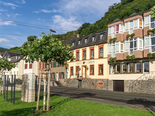 Das Hotel Bären liegt traumhaft direkt am Moselufer im historischen Bernkastel-Kues – mitten im Herzen des Weinlandes! Zwei benachbarte Gebäude bilden das Ensemble: das Stammhaus mit Standard- und Komfortzimmern sowie das Haus Bärchen mit Superior-Zimmern zur Moselseite. Die Lage ist perfekt für Wanderer, Radfahrer und Weinliebhaber – Moselsteig, Hochseilgarten und E-Bike-Paradies sind nur einen Katzensprung entfernt.