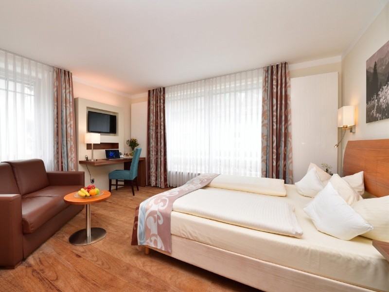 Das Hotel Greinwald liegt mitten im Herzen von Marktoberdorf, einem staatlich anerkannten Erholungsort im idyllischen Allgäu und verbindet Genuss, Komfort und herzliche Gastfreundschaft.. Das Hotel bietet 18 helle, ruhige Zimmer mit hochwertiger Einrichtung und Ausstattung. Gäste genießen ein reichhaltiges Schlemmerfrühstück, täglich wechselnden Mittagstisch sowie hausgemachte Kuchen und Torten im stilvollen Café. Die hauseigene Konditorei verwöhnt mit handgefertigten Pralinen und in den Sommermonaten mit selbstgemachtem Eis. Ein besonderes Highlight ist der sonntägliche Greinwald-Brunch mit Buffet und 3-Gang-Menü. Der idyllische Café-Garten lädt bei schönem Wetter zum Verweilen ein.