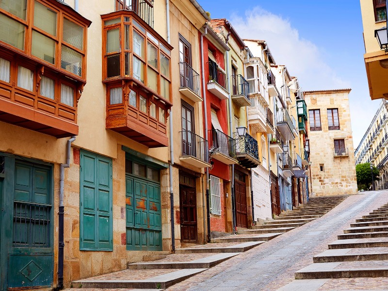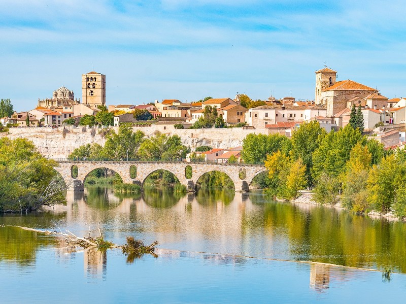 Der Jakobsweg führt dich in die alte Königsstadt Zamora. Doch vorher wanderst du durch die kastilische Hochebene, vorbei an niedrigen Sträuchern und einsamen Gehöften. Dann türmt sich Zamora mit ihren vielen romanischen Kirchen vor dir auf. Unbedingt sehenswert: die Kathedrale mit ihrer steinernen Kuppel und die mittelalterliche Stadtmauer mit Blick auf den Duero.